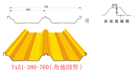 YX51-380-760型(角弛)彩色壓型鋼板特點(diǎn):